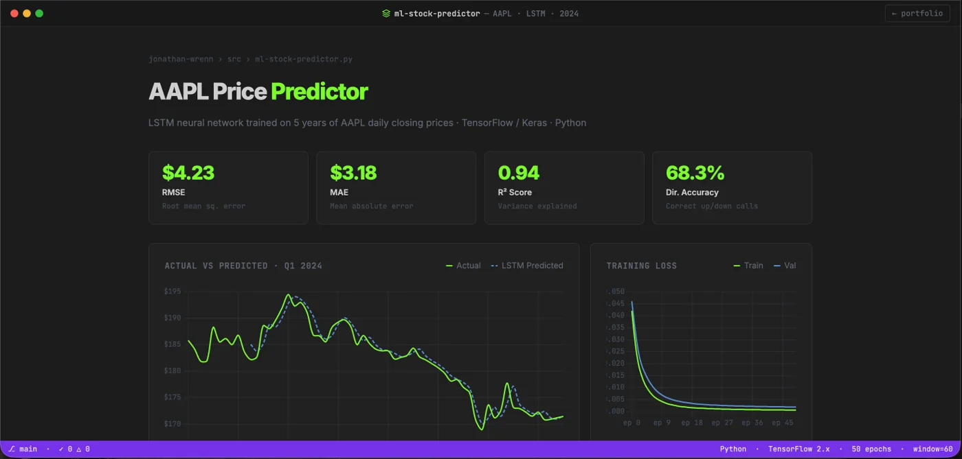 LSTM neural network that predicts AAPL stock prices using TensorFlow/Keras and yfinance market data — built to explore time-series forecasting and deep learning.